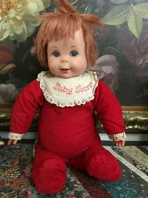photo: a Mattel talking doll. Notice the pull string on her right hip.